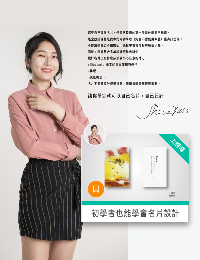 由 薛零六 老師 為初學者(完全不會使用軟體)所量身打造的課程,想要創業,想要自己設計名片,應該如何動手設計?